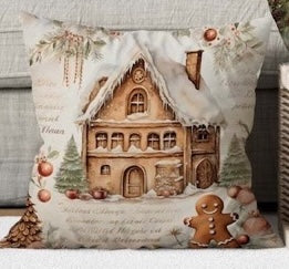 I suoi motivi natalizi stampati in digitale – casette innevate, alberi di Natale, Babbo Natale e dolcetti di pan di zenzero – donano un tocco di magia a ogni ambiente, dal salotto alla camera da letto.
