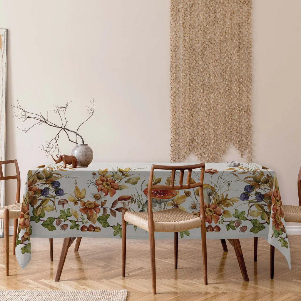 Realizzata in stampa digitale ad alta definizione, questa tovaglia cattura tutta la bellezza della stagione con tonalità dorate, foglie e dettagli naturali che donano un tocco accogliente e raffinato al tuo ambiente.