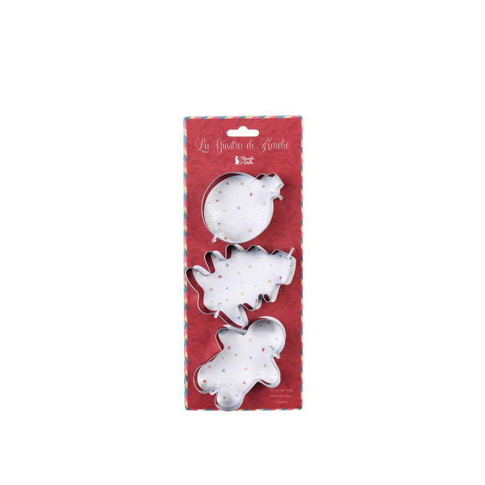Dona un tocco di allegria e tradizione alle tue creazioni natalizie con questo delizioso set di 3 stampini in metallo firmato La Giostra di Amelie.