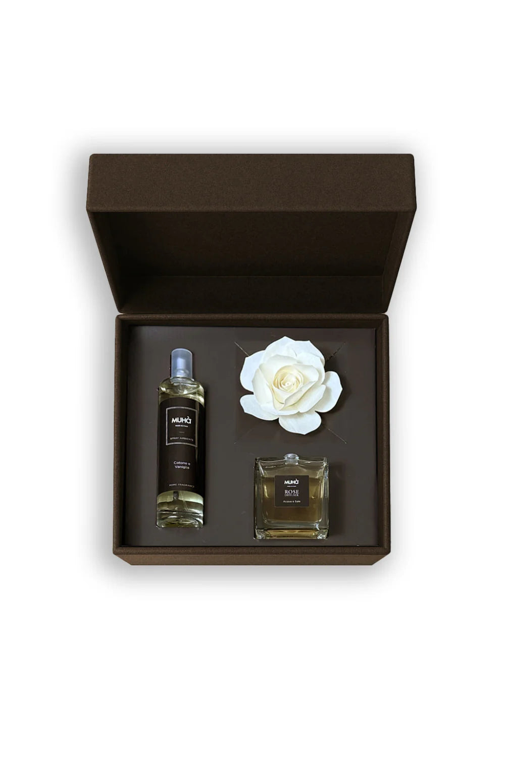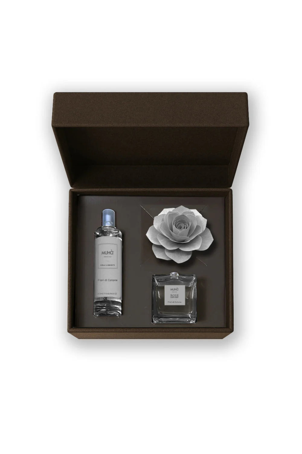 La Confezione Regalo "Rosa" Muhà è la scelta perfetta per chi desidera donare un tocco di stile e benessere agli ambienti della casa. Al suo interno troverai: