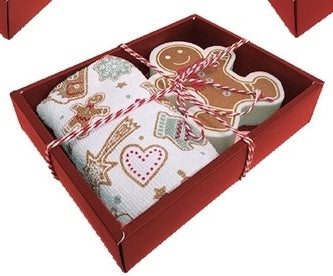 Il set Judy di SG Home include un strofinaccio natalizio in cotone abbinato a una spugnetta decorativa coordinata, confezionati in un’elegante scatola rossa regalo con fiocco e tag natalizio.