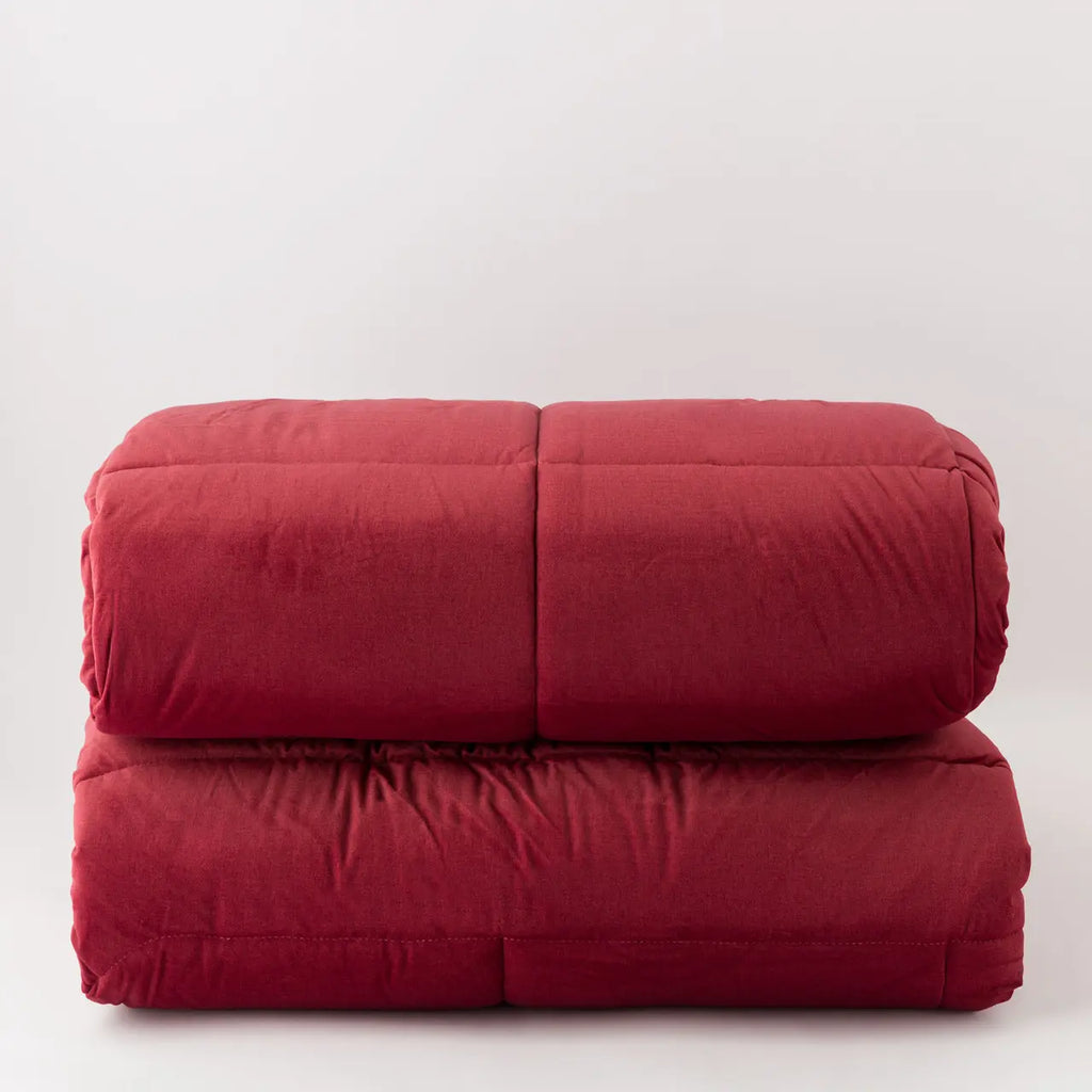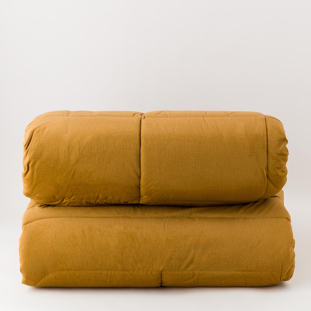 La trapuntatura piazzata a quadri con tre cornici e angoli stondati valorizza il letto con una presenza scenografica ma equilibrata. Ogni variante cromatica è studiata per integrarsi con stili d’arredo diversi, offrendo versatilità e carattere: Bianco Antico, delicato e senza tempo, perfetto per ambienti chiari e raffinati; Tortora, elegante e naturale, si adatta a camere dai toni neutri e rilassanti; Grigio Nube, moderno e profondo, ideale per ambienti metropolitani o industrial chic; Giallo Ambra, caldo e avvolgente, dona luce e personalità alla stanza; Rosso Melograno, intenso e sofisticato, per una camera da letto dallo spirito audace; Rosa Loto, romantico e delicato, perfetto per atmosfere soft e femminili; Verde Bosco, profondo e rassicurante, per interni ispirati alla natura;