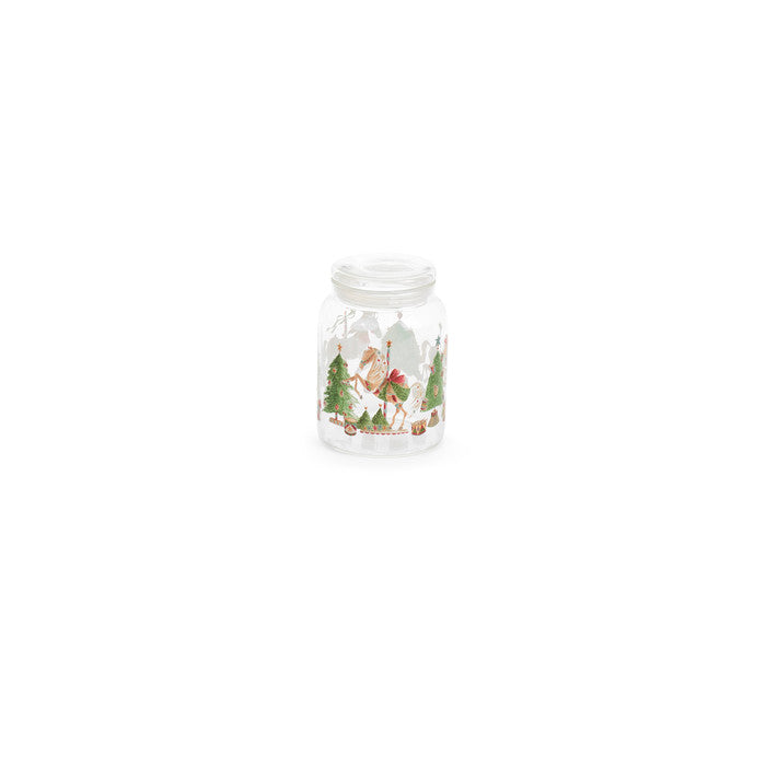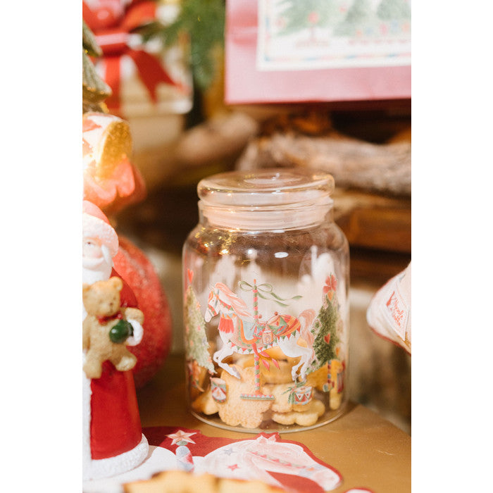 Decorato con l’iconico motivo dei cavalli a giostra e dettagli natalizi delicati, questo barattolo è perfetto per custodire biscotti, dolcetti o caramelle con stile.