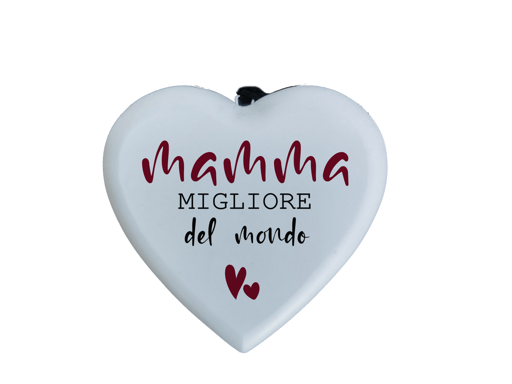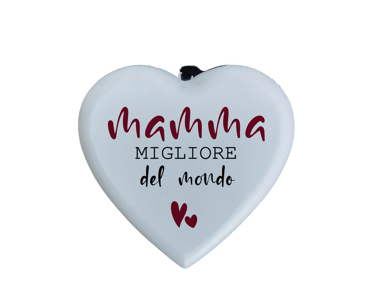 Un cuore per dire tutto l'amore che spesso le parole non bastano a esprimere. La dedica in legno verniciato "Mamma migliore del mondo", realizzata artigianalmente a forma di cuore, è un pensiero dolce e profondo per celebrare la persona più importante. Elegante, delicata e piena di significato, è il regalo perfetto per la Festa della Mamma, un compleanno o semplicemente per ricordarle quanto è speciale ogni giorno.