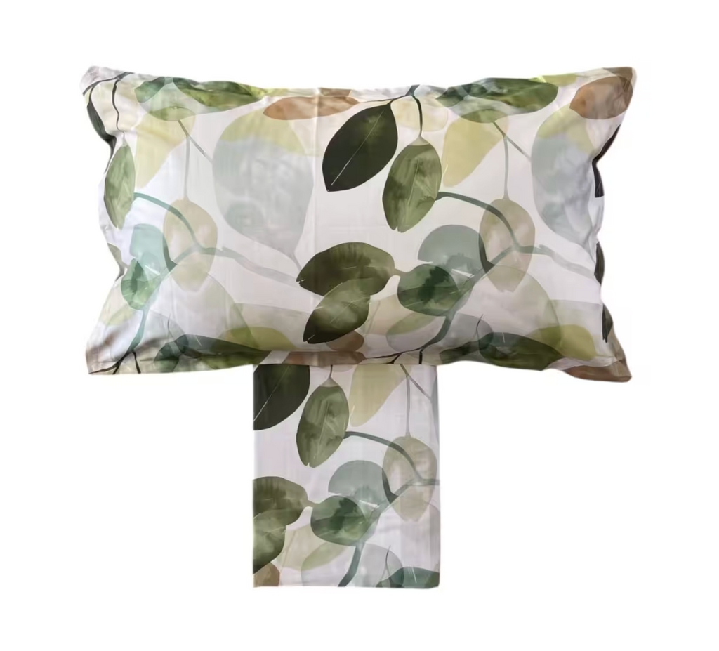 Il Copripiumino Blumy è realizzato in Raso di cotone. Presenta una fantasia foliage colorata. Molto elegante ma allo stesso tempo vivace.