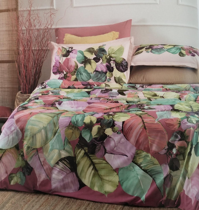 Il design Equadora porta un tocco di vivacità nella tua camera da letto, con tonalità ispirate alla natura che creano un'atmosfera accogliente e rilassante. Facile da abbinarvi ad altri tessili, questa parure è perfetta per ogni stagione e per chi desidera un ambiente sereno e raffinato.
