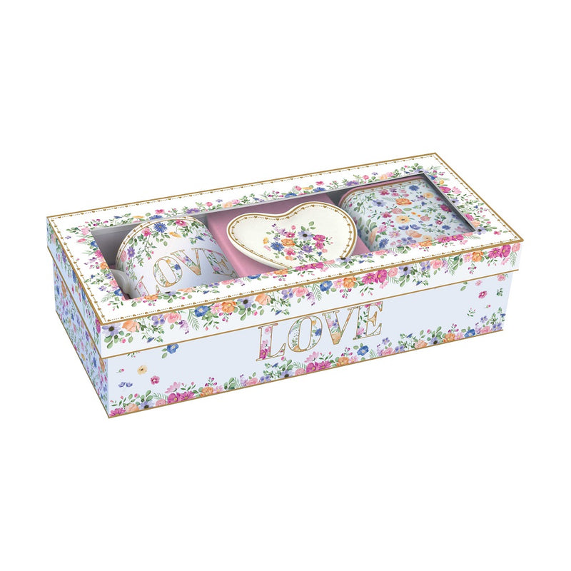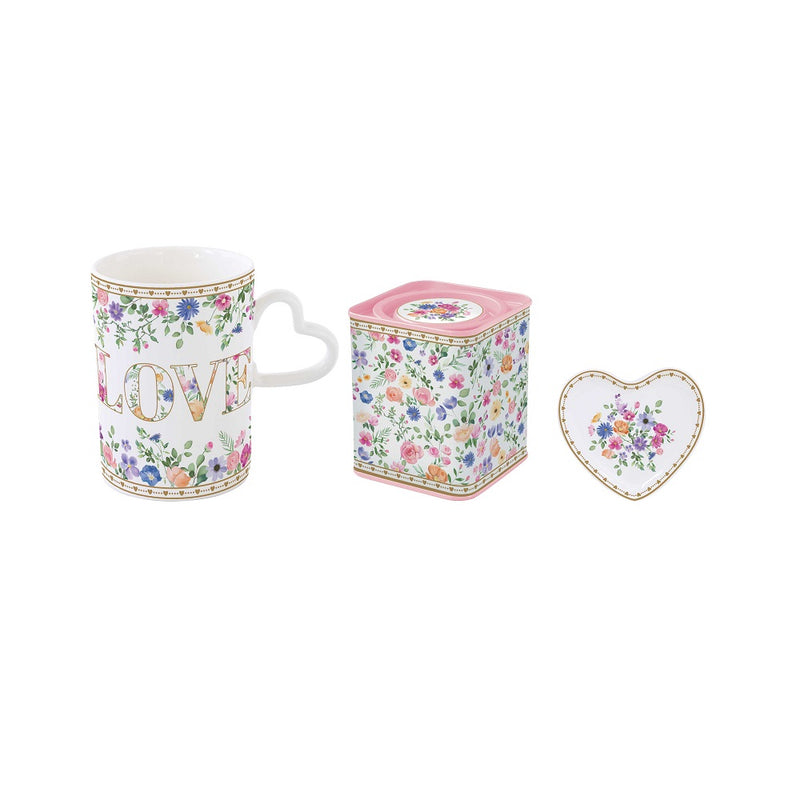 • 1 tazza in porcellana di alta qualità, decorata con motivi romantici di cuori e fiori, che conferisce un tocco di dolcezza a ogni sorso.