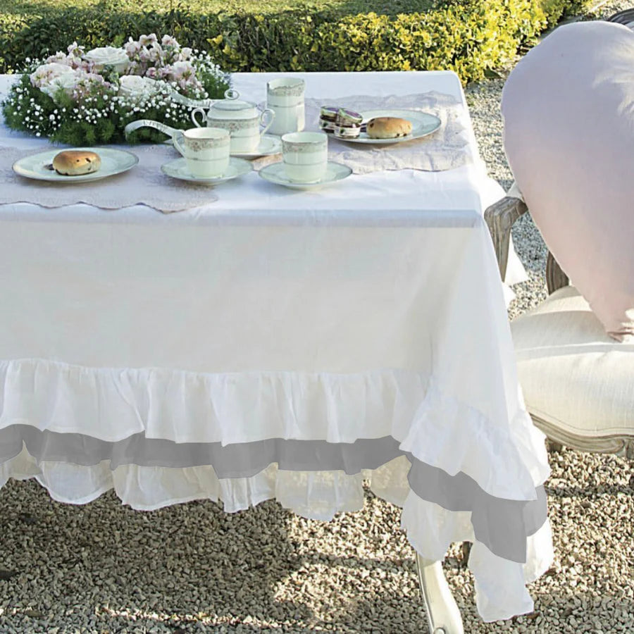 Tovaglia da Tavola modello Sucre con fantastiche Rouche Bicolor con Rouche Beige.